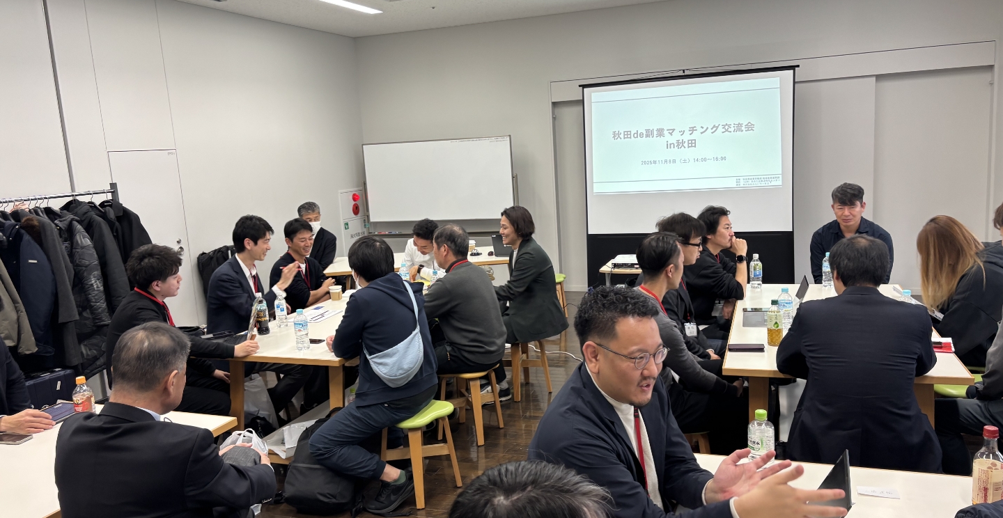 ⾸都圏の副業・兼業⼈材を対象に、「秋⽥de副業」の魅⼒や⼈材活⽤例、副業案件の紹介、秋⽥県企業3社との意見交換などを⾏いました。